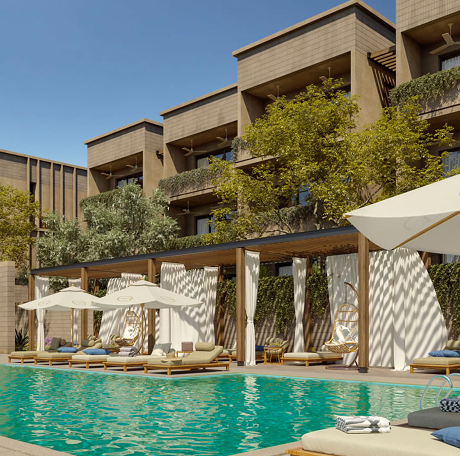 Tipos de habitación: 3 tipos: ARENA: 1 recámara y 1 baño (51m2 + 7m2Terraza) BAHÍA 2 recámaras y 2 baños (95m2+ 7m2 terraza) CARACOL: 3 recámaras y 2 baños (105m2 + 7m2 terraza)
